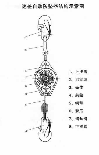 防墜器采用彈簧驅動,在牽引繩斷繩時,利用彈簧儲備的能量自動動作,將斜井人車平穩的停住。